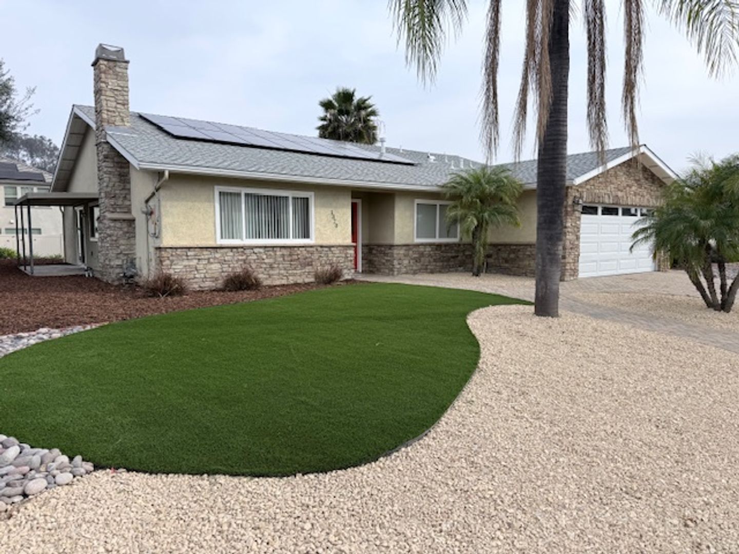 Welcome to this beautifully remodeled 3-bedroom, 2-bathroom home located in the vibrant city of Escondido, CA. This property boasts a fully landscaped ultra low maintenance front and rear yard with 2 large covered patios, perfect for outdoor enjoyment. Inside, you'll find a cozy fireplace, fresh paint, and new carpeting throughout, creating a warm and inviting atmosphere. The kitchen is a chef's dream with its stunning quartz countertops and brand new appliances. The home's location is a bonus, with easy access to the freeway and proximity to shopping centers. Experience the perfect blend of comfort, convenience, and modern living in this Escondido gem. **Rent includes the first $300 of electric usage!***