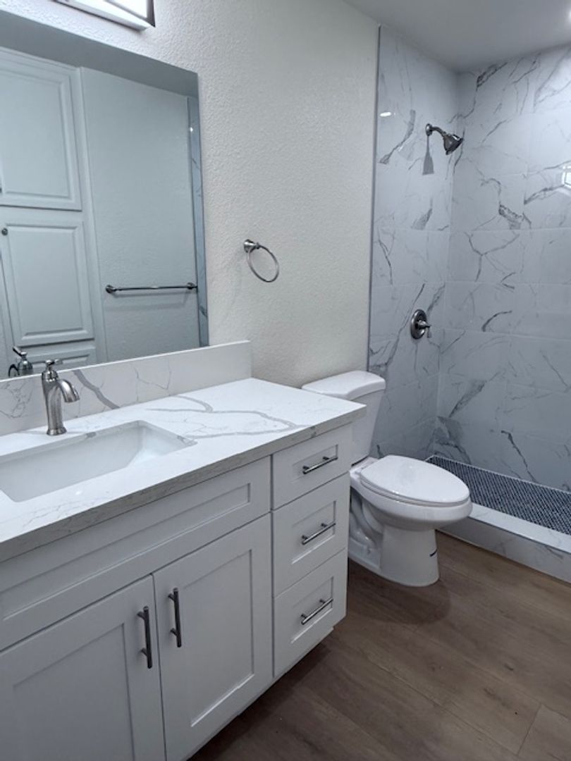 Upgraded Bathroom featuring modern finishes.