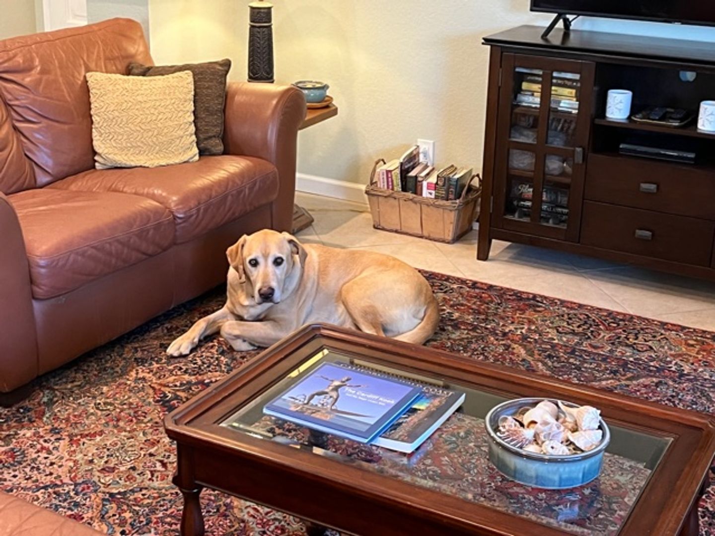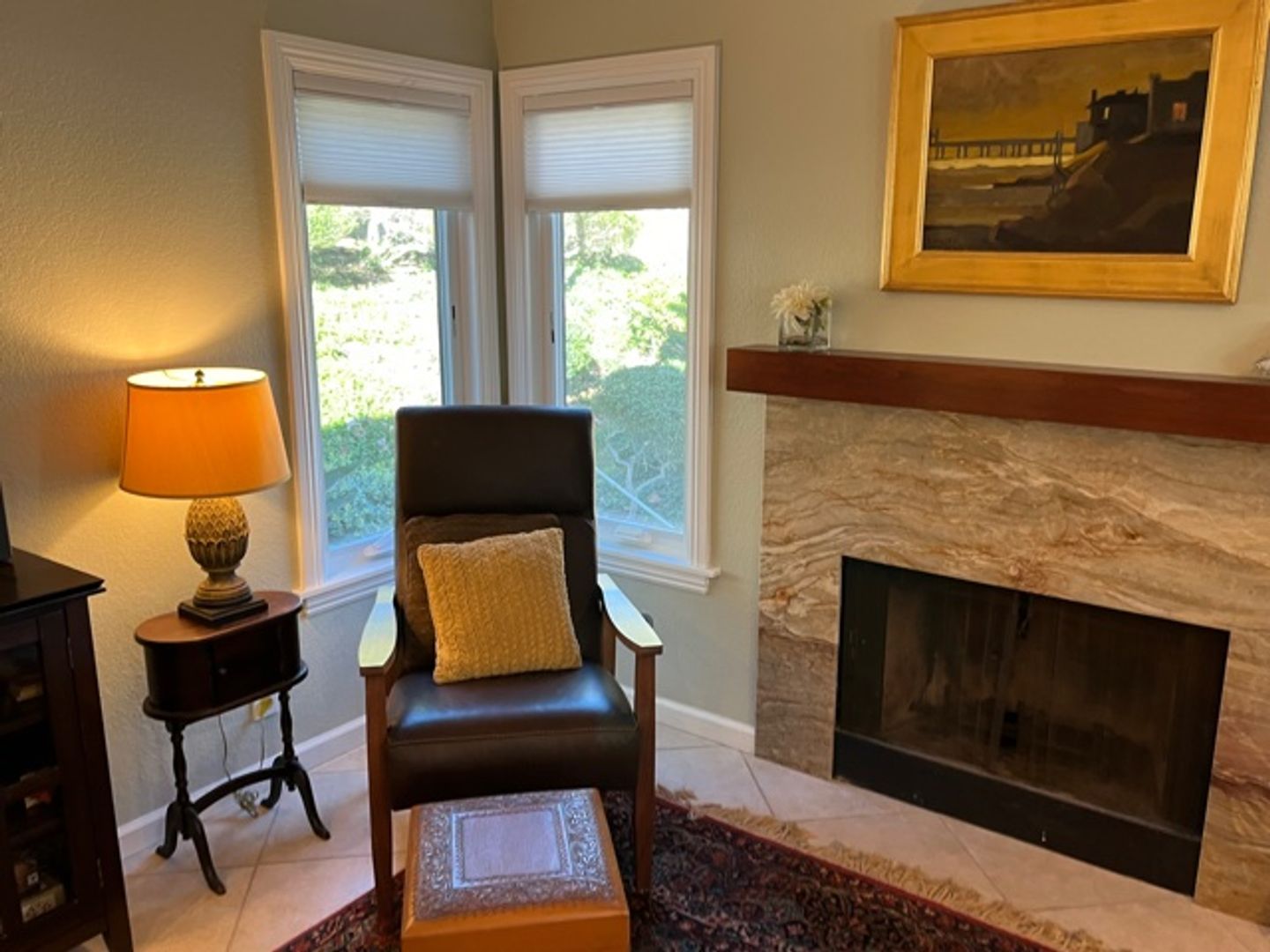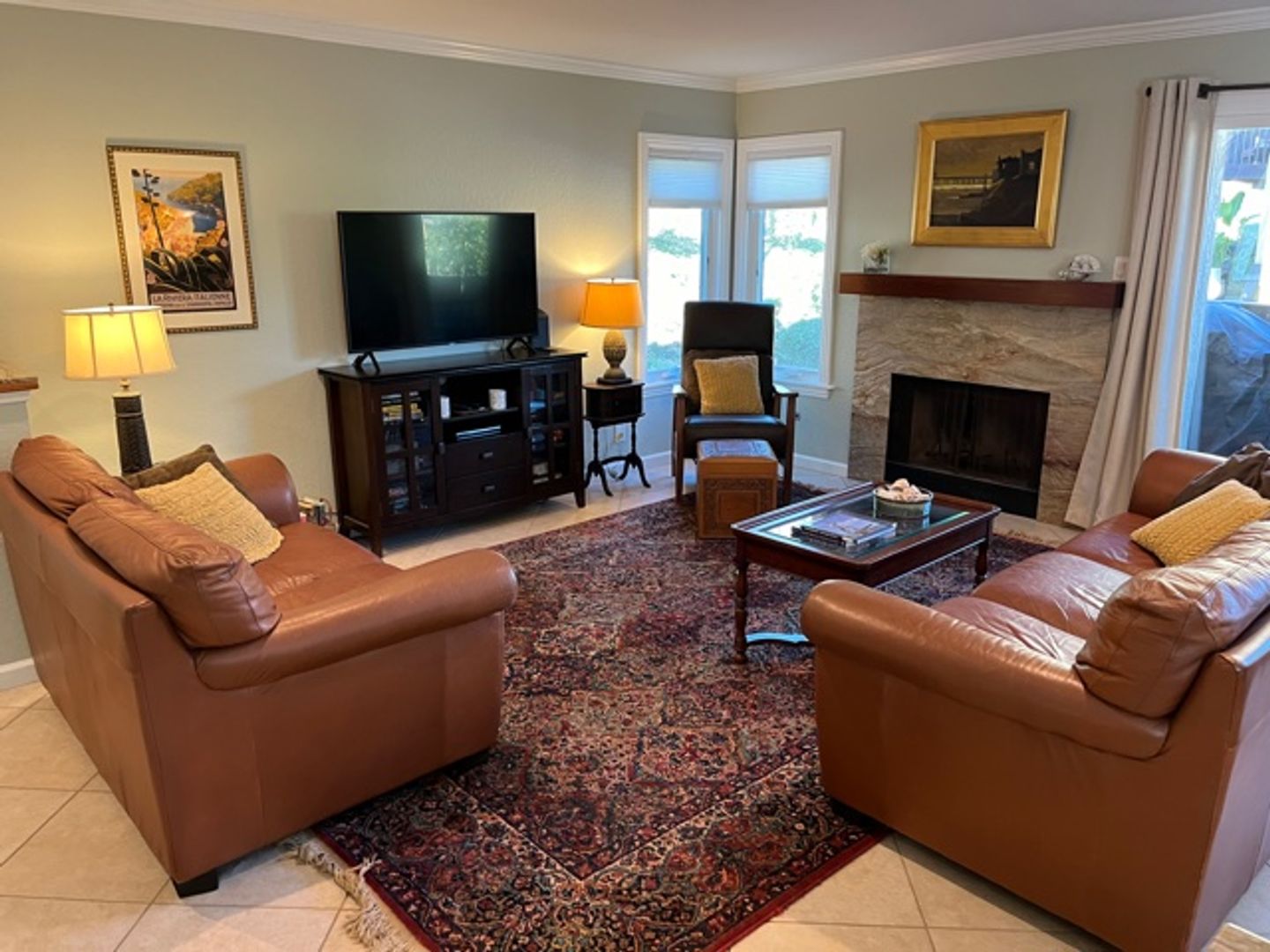 Beautiful rugs, leather furniture and original art.