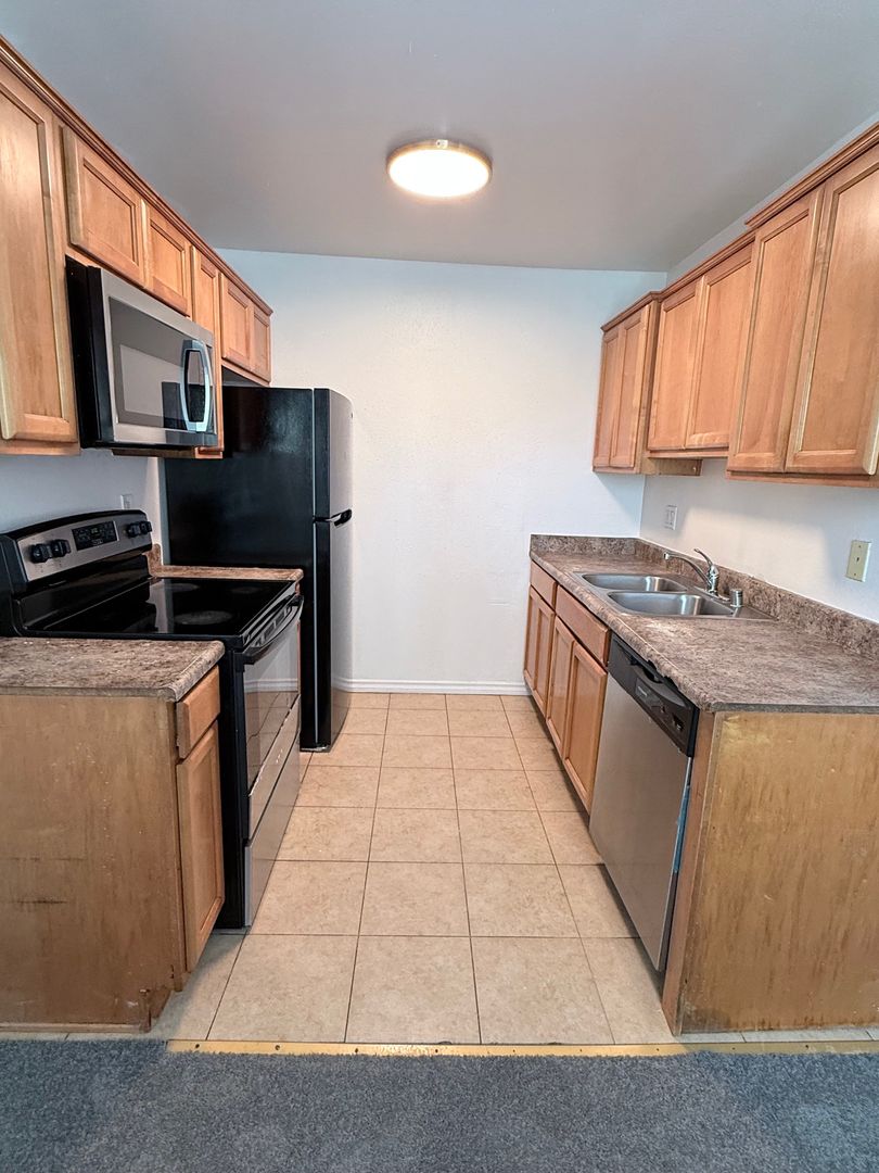 The unit has many upgrades. Including nice counters and cabinets in kitchen. The condo has nice tile flooring in kitchen and bath, new carpet in living room, eating area and bedrooms. The unit has newer style white double pane windows.This unit comes with 1 off street gated parking lot spot.