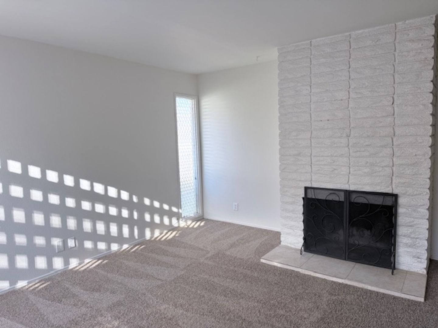 Cute 2 bedroom 1 bathroom in Skylark Terraces! Fresh paint and carpet with a wood burning fireplace. Water, sewer and trash are included. Private patio and comes with a 1 car detached garage. Cats are allowed for this complex by owner approval. Several on-site coin laundry rooms.